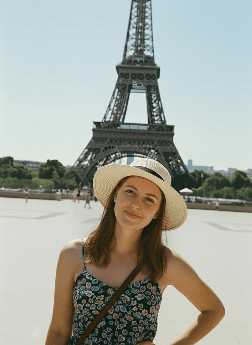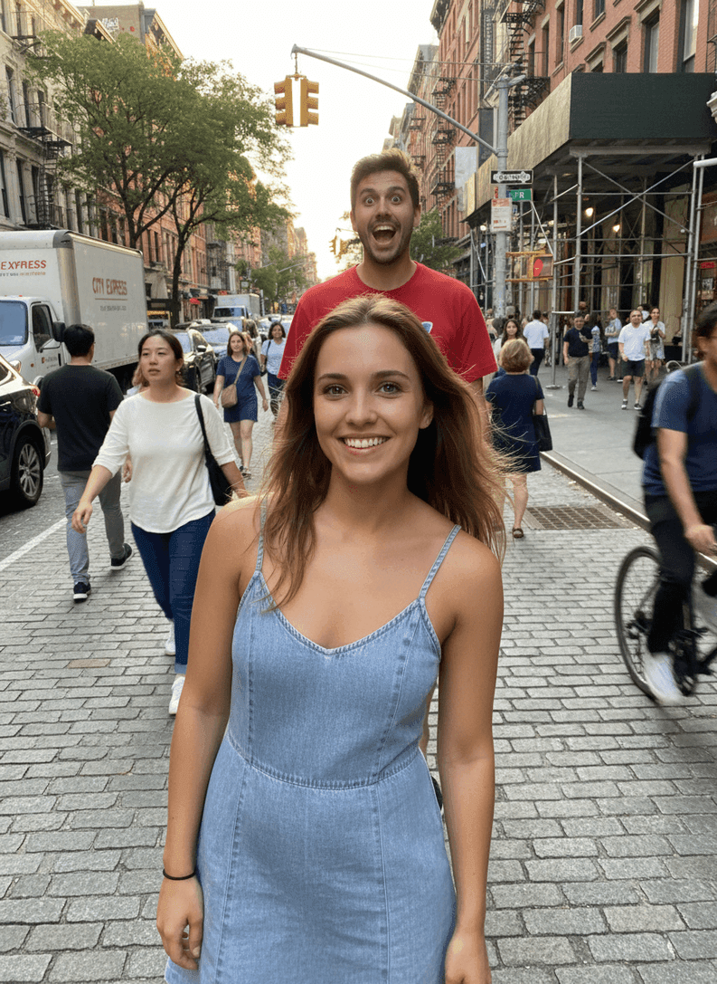 Not just face smoothing—pose, angle, lighting, background all improved together.